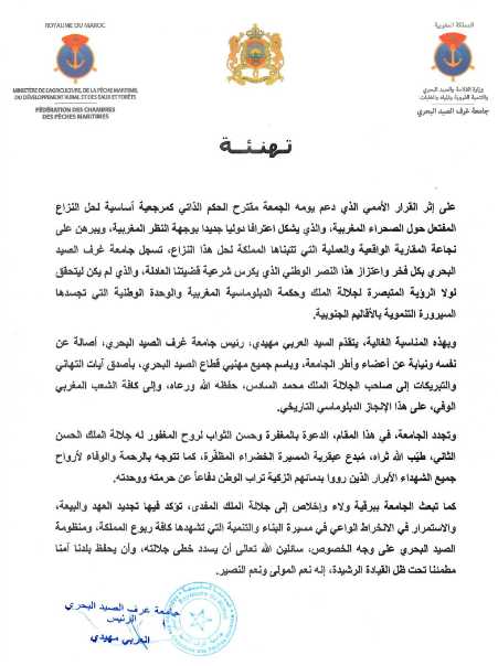 تهنئة بمناسبة القرار الأممي حول مغربية الصحراء